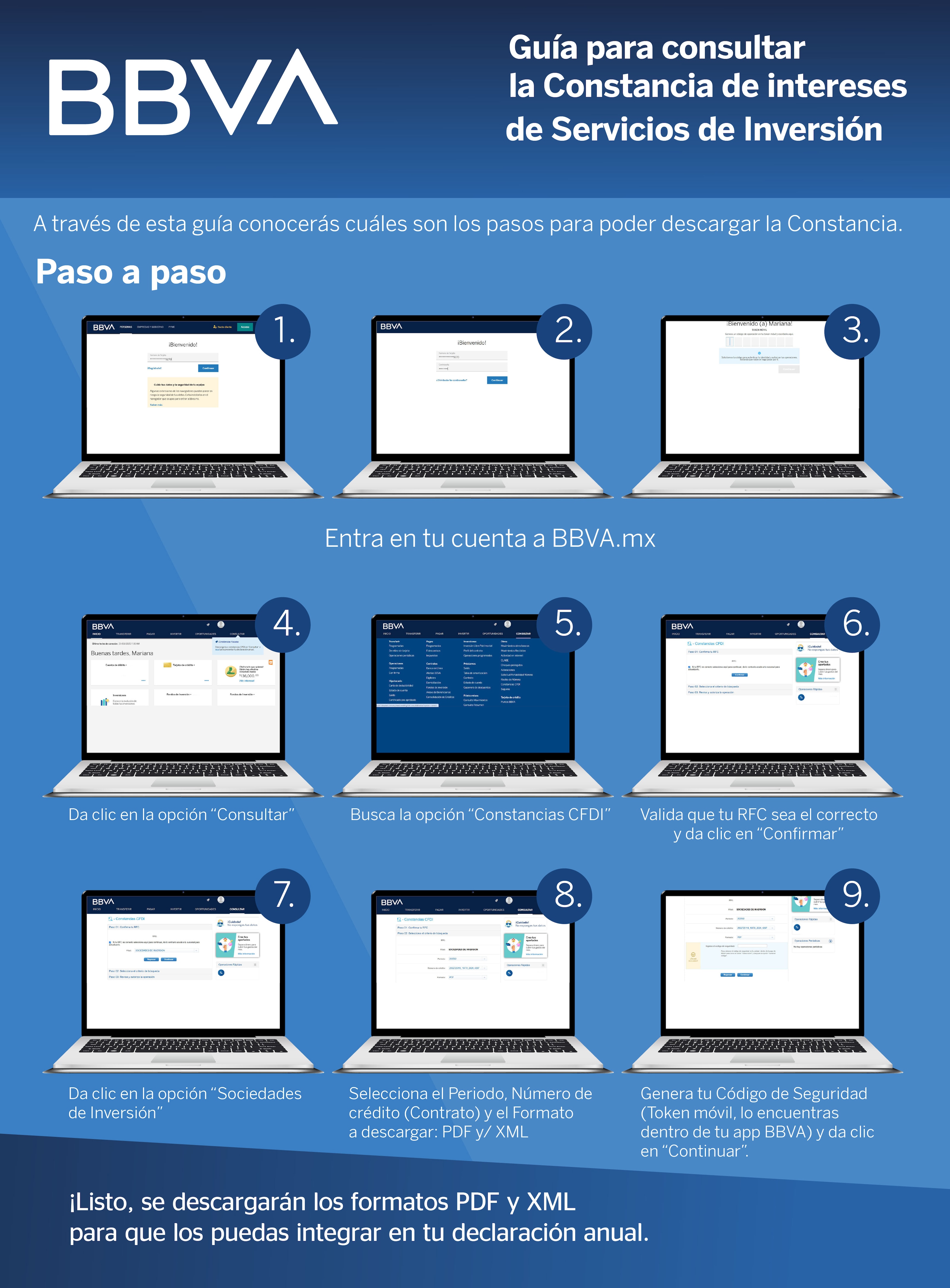 Los contribuyentes pueden obtener la constancia de intereses devengados a través del portal BBVA.mx.