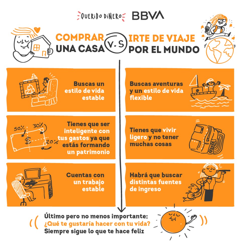 La realidad es que ninguna opción está peleada con la otra, puedes viajar y comprarte una casa pero habrá que definir tus prioridades, jerarquizar, trazar un plan y ser disciplinada/o con tus objetivos.