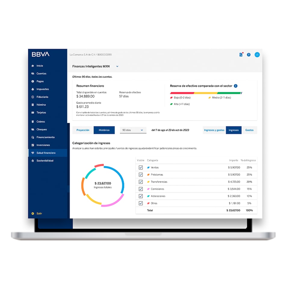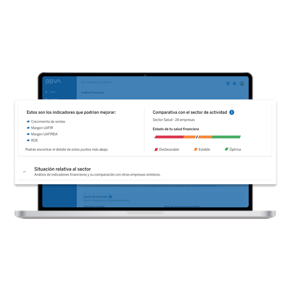 La información derivada de las estimaciones es únicamente para efectos informativos y el uso de las herramientas es responsabilidad del cliente, BBVA no está realizando sugerencias ni pronósticos de las finanzas de las empresas.
