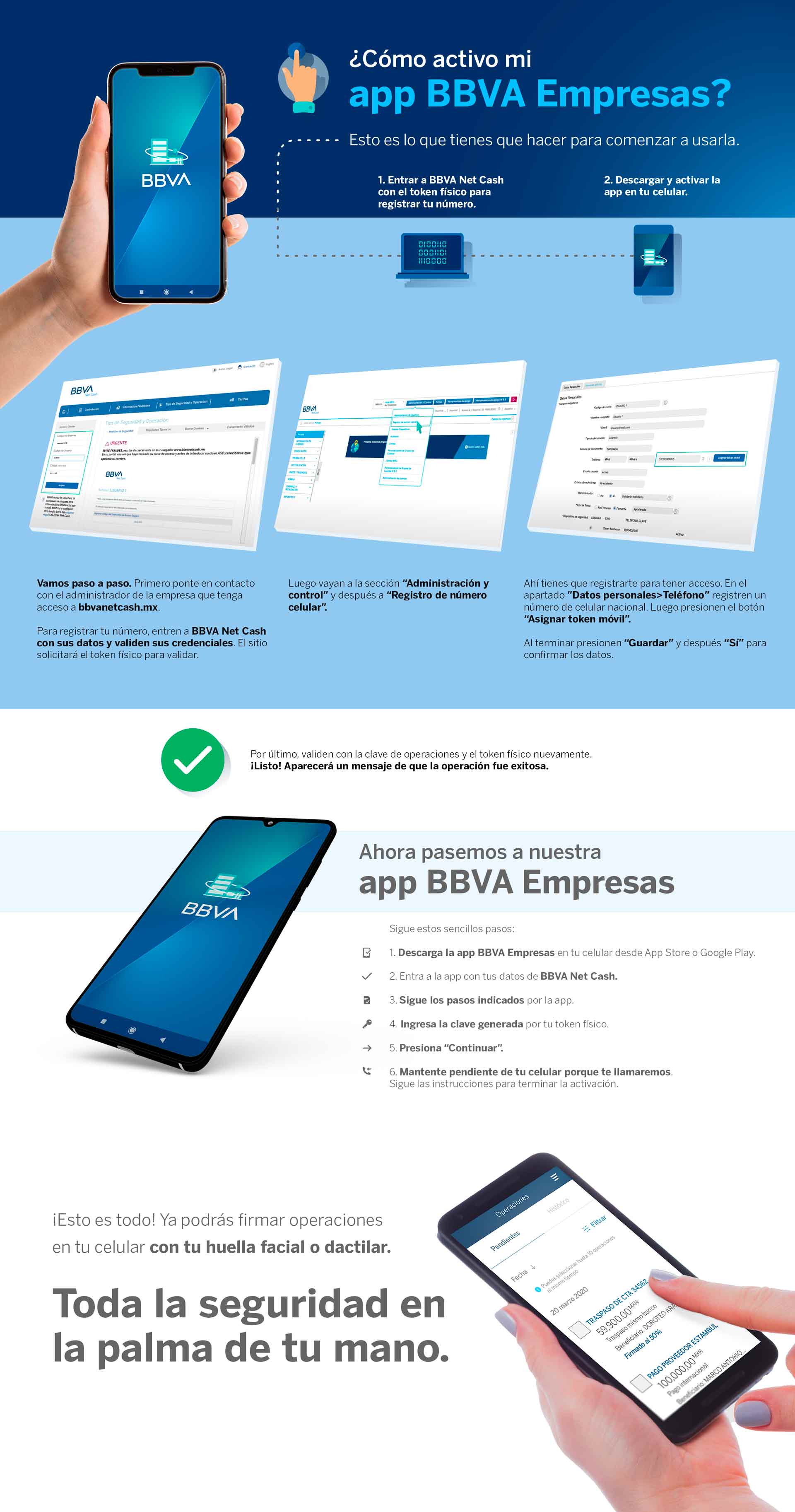 Pide al administrador de BBVA Net Cash que registre el número celular desde donde usarás la app.
