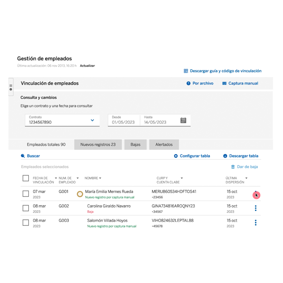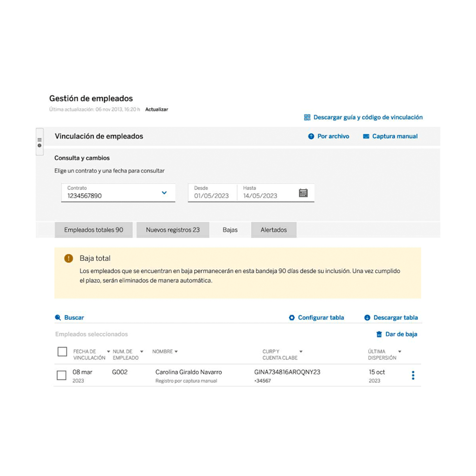 Administración de altas, bajas y cambios de tus empleados.
