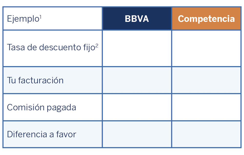1 Este ejemplo se realizó en el supuesto de que tus ingresos mensuales facturados con la terminal BBVA fueran de $60,000 MXN.