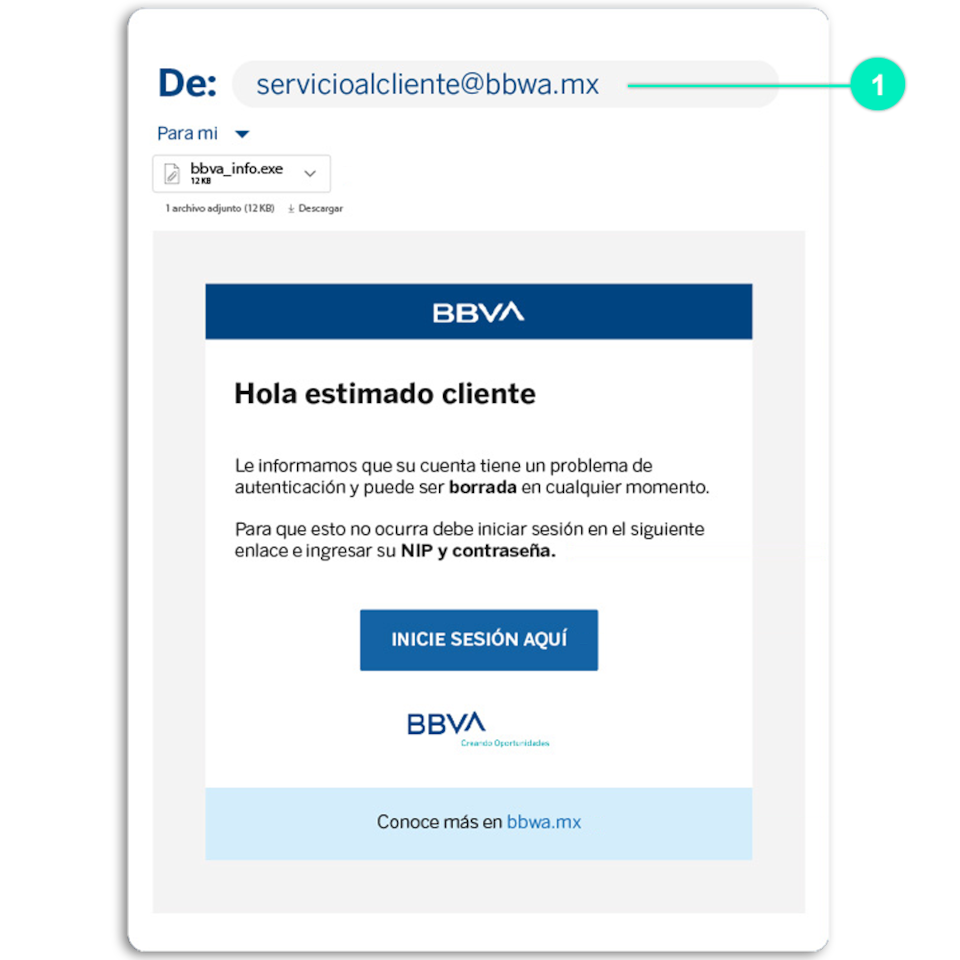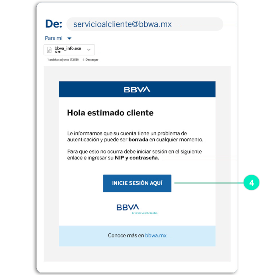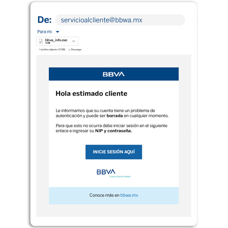- BBVA jamás te contactará por mensaje en tus redes sociales y mucho menos te pediremos los 4 dígitos de tu NIP o tu CVV.