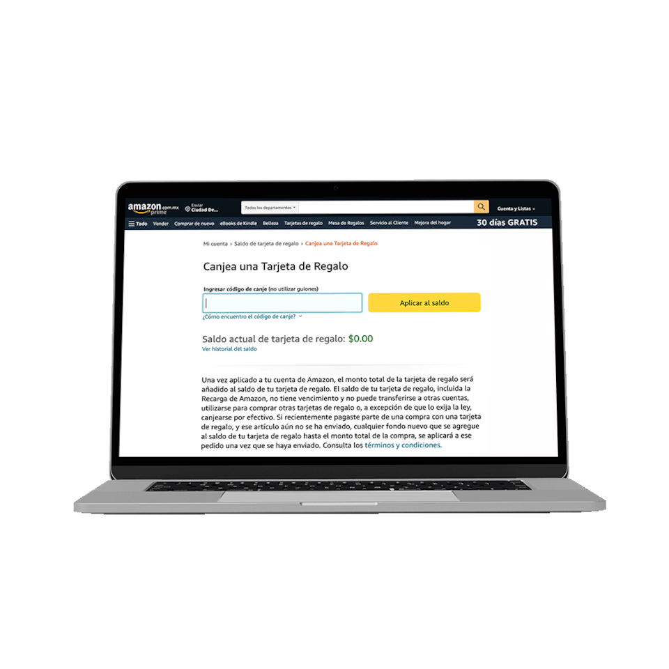 Canjea tu Tarjeta de Regalo Amazon México en: