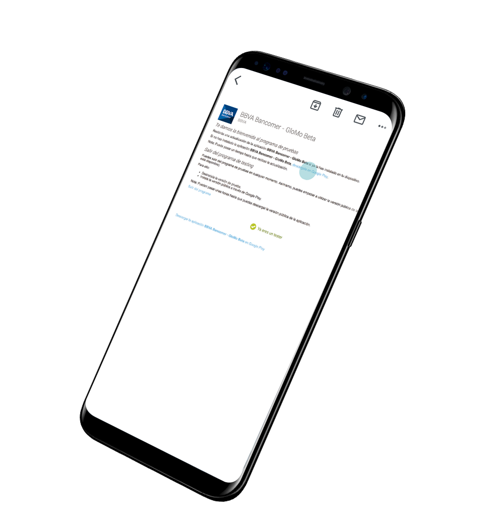 Gracias por darte de alta para ser Beta Tester y probar la nueva app BBVA México