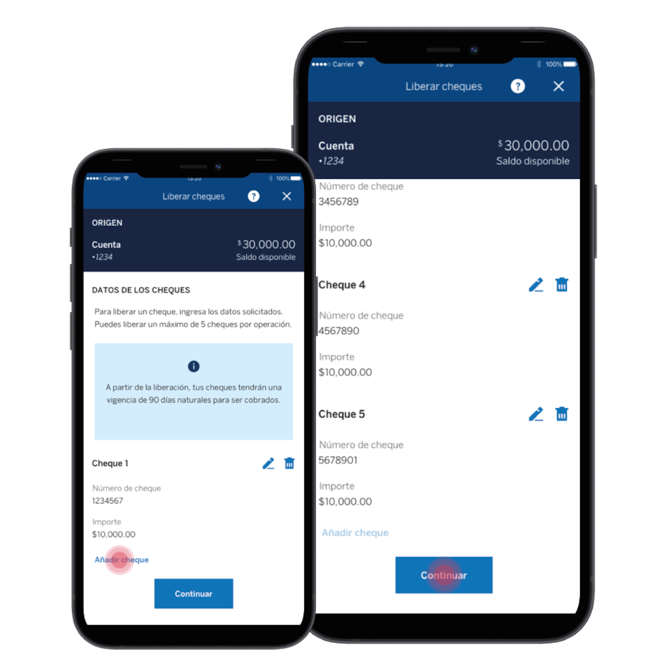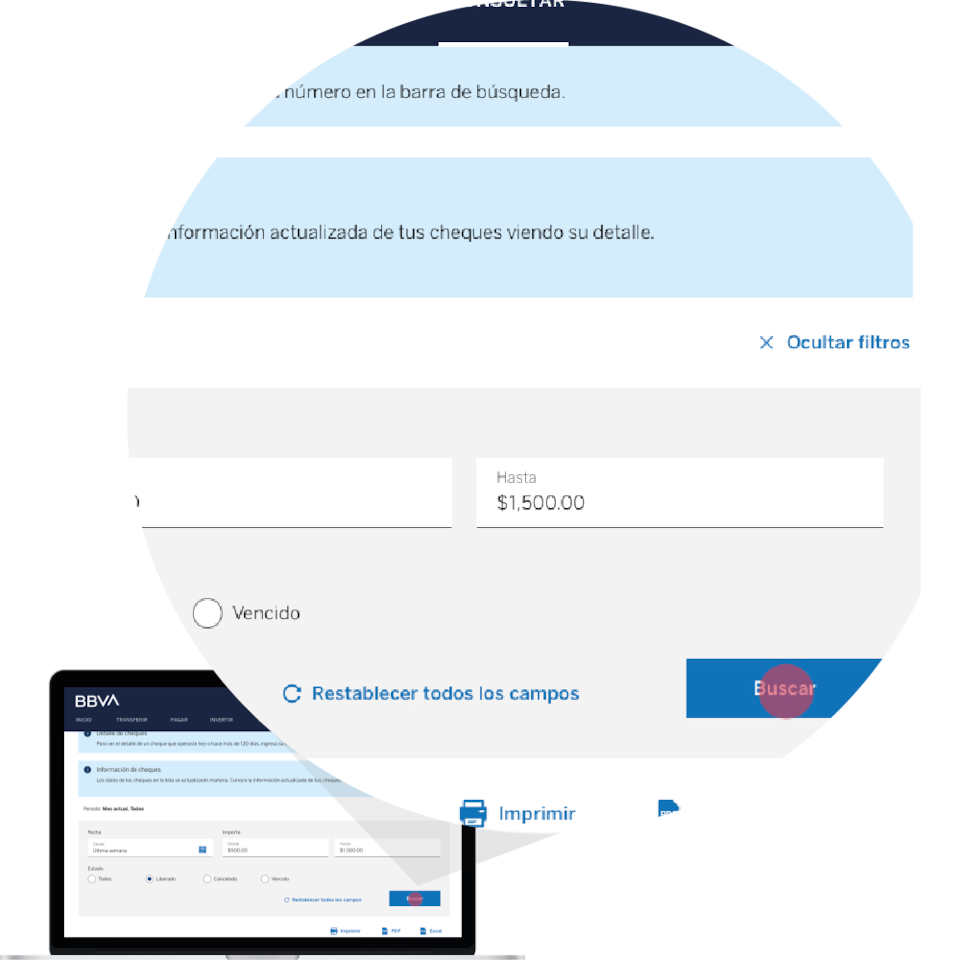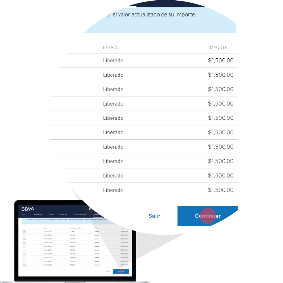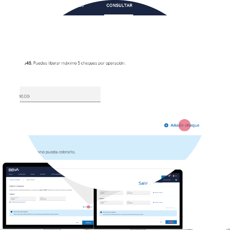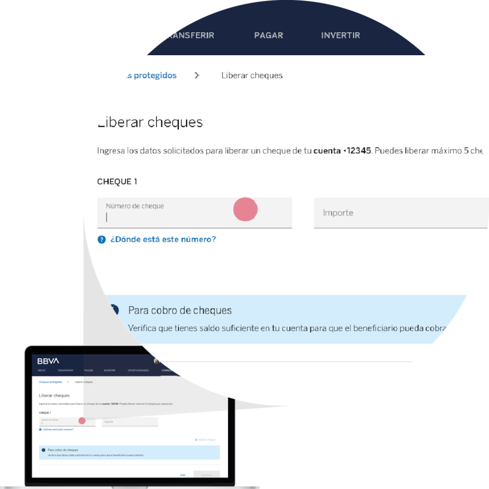 Puedes liberar hasta cinco cheques por operación en bbva.mx y sin límite en Línea BBVA.