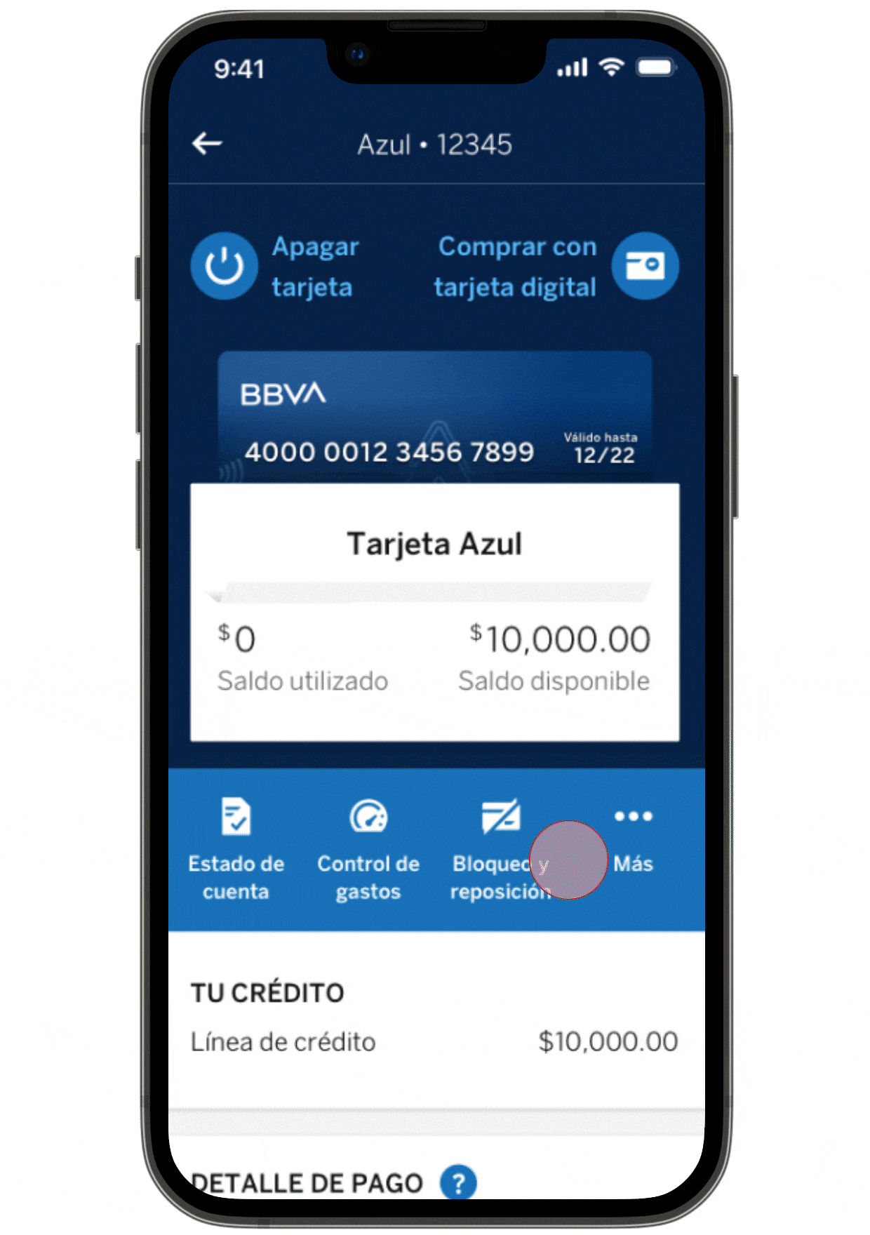 Puedes consultar en tu app BBVA todas las veces que quieras y al instante el número de tu tarjeta física y la fecha de vencimiento. Solo entra en la sección ‘Ver detalle de tarjeta’.
