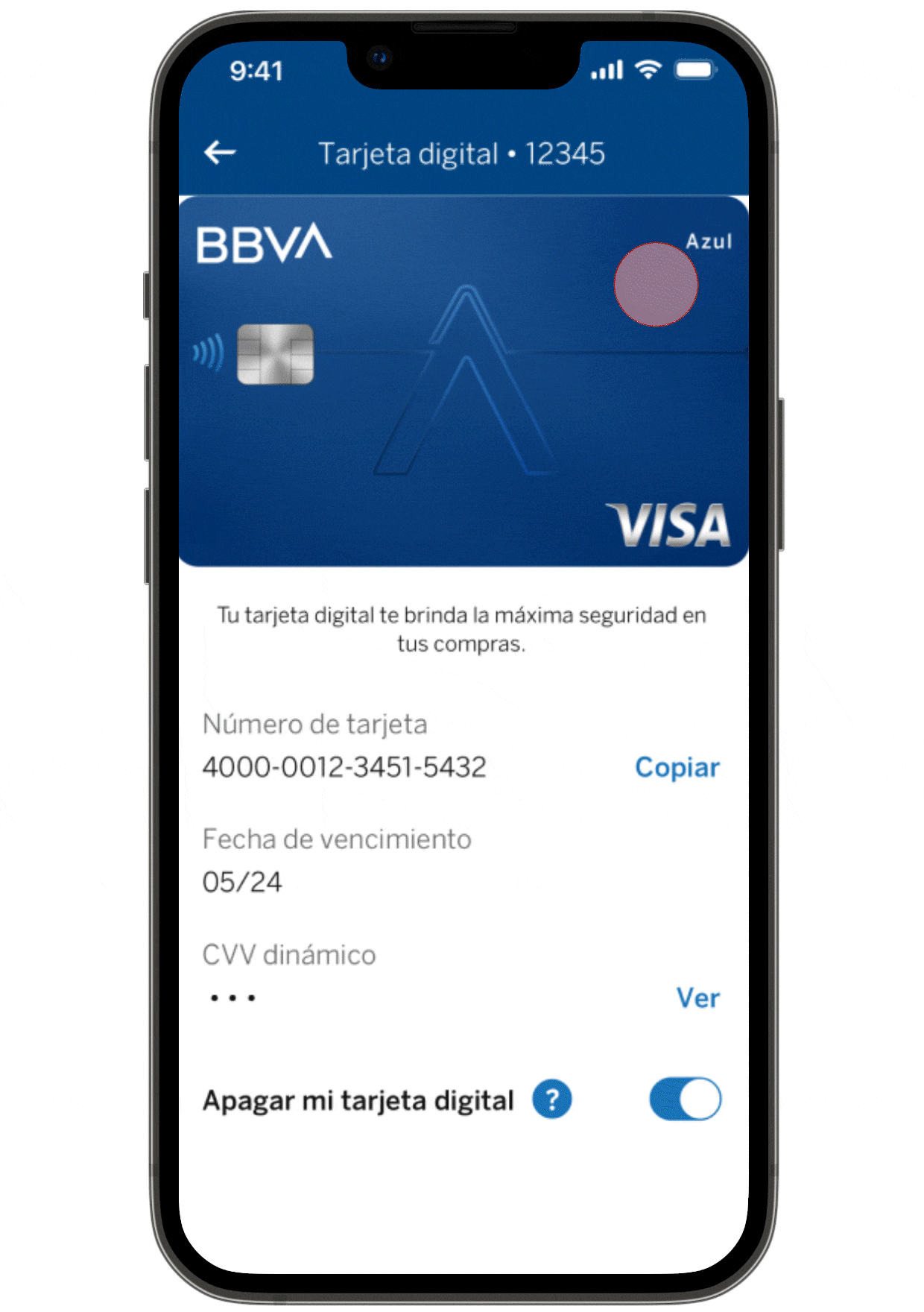 El CVV solo te sirve para hacer compras en línea. Así que lo reinventamos y lo hicimos dinámico. En tu app BBVA en la sección ‘Tarjetas’ selecciona tu tarjeta y luego entra a la opción ‘Comprar con tarjeta digital’; ahí encontrarás la información necesaria para completar tus compras en línea de forma segura.