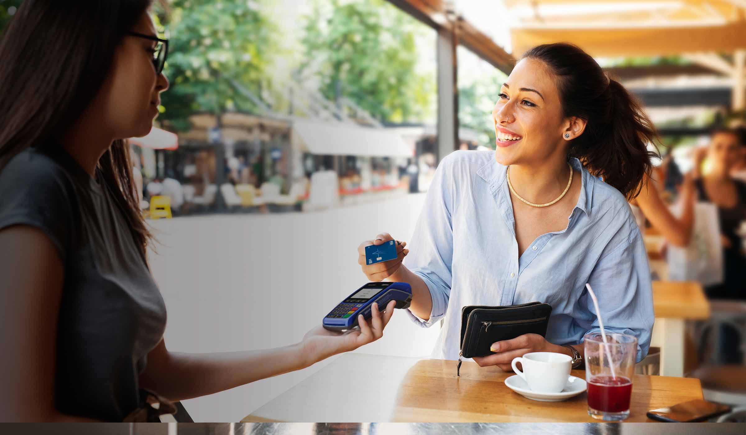 - Paga fácil. Solo necesitas acercar tu celular o tu tarjeta a la terminal